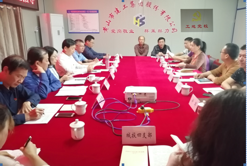 朱書記一行人員一到工地,就奔赴施工現場調研,并認真聽取了項目施工情況的介紹,他要求在確保安全的前提下要加大施工機械設備投入,加班加點,合理安排工序銜接,保質保量的加快施工進度,盡早為業主提供一個滿意的工程。隨后步入“工地黨?!边M行了交流座談,先后聽取了“工地黨?!苯M織情況介紹、項目建設情況介紹、項目施工情況介紹等。朱書記以《中國共產黨支部工作條例(試行)》為黨課內容進行了專題講座。