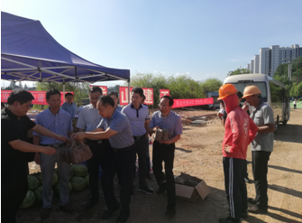 二〇一九年八月二日上午,黃山市屯溪區區委書記江善良率區四大班子及相關部門領導冒著酷暑,頂著驕陽,風塵仆仆親赴黃山市建工集團正在緊張施工中的黃山市重點工程項目八一大橋項目現場“送清涼”。
