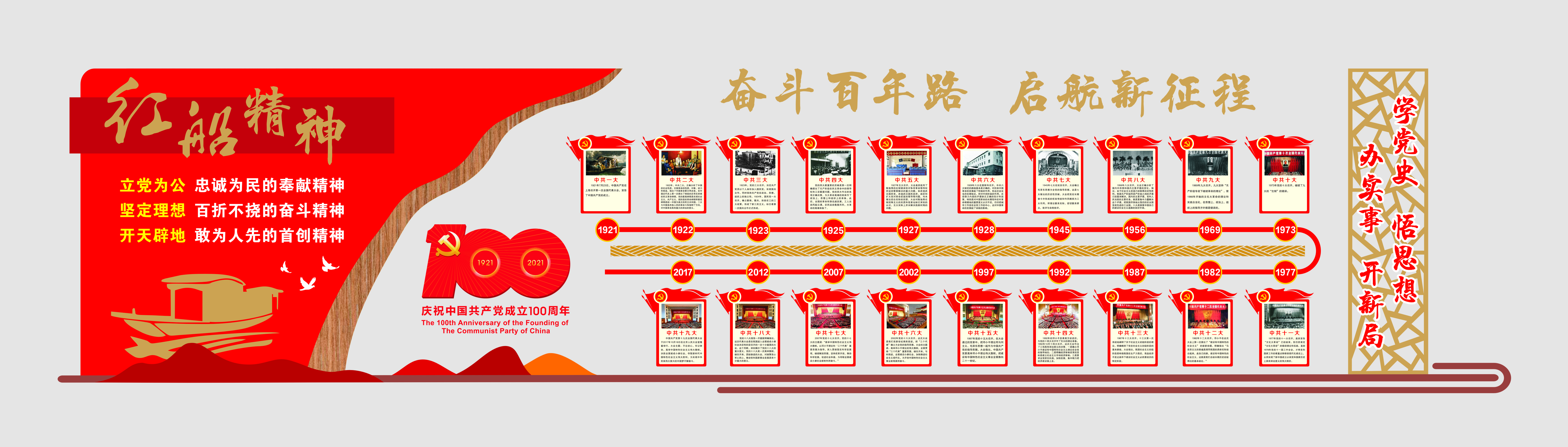 展板內容主要是:1921年7月中國共產黨的成立到2021年7月黨的百年發展簡史等內容。