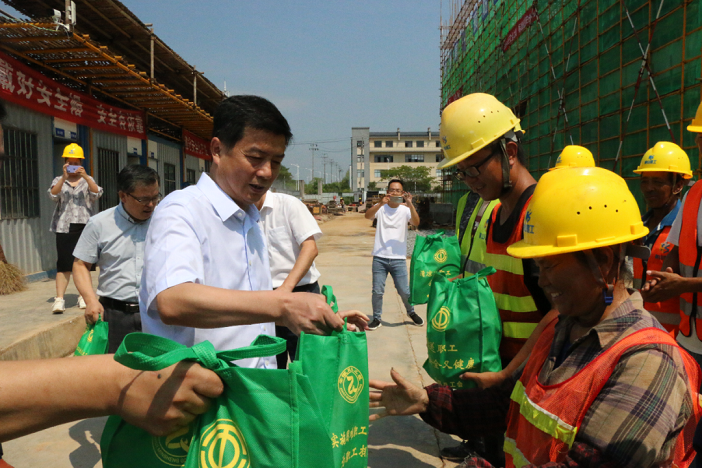 在項目施工現場,區委書記吳旭光代表區委區政府向在高溫下作出辛勤工作的工人們表示深深的敬意,將防暑降溫物品送到他們手中,并叮囑他們要勞逸結合,注意身體健康。并要求項目部要科學安排作息時間,制定高溫應急預案,加強施工現場安全管理,確保高溫時期工地安全生產形勢穩定。