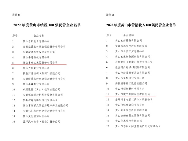 日前,由黃山市工商聯(lián)、市經(jīng)信局、市監(jiān)管局及市商務(wù)局聯(lián)合發(fā)布2022年度黃山市民營(yíng)企業(yè)納稅及營(yíng)銷收入百?gòu)?qiáng)名單公布,黃山建工集團(tuán)連續(xù)多年再次實(shí)力入圍,獲此殊榮!