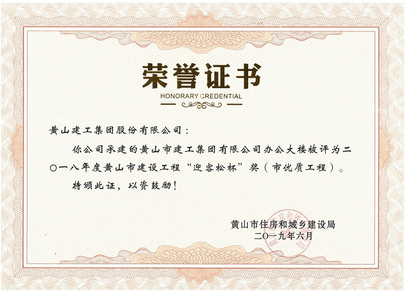 2019年度黃山市建設(shè)工程優(yōu)質(zhì)工程獎(jiǎng)